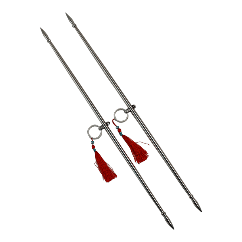 2. Эмейские спицы (峨眉刺, éméicì) — традиционное китайское парное холодное оружие, представляющее собой металлические стержни с заточенными концами и кольцом для пальца посередине, что позволяет вращать их в ладони. ↩︎
