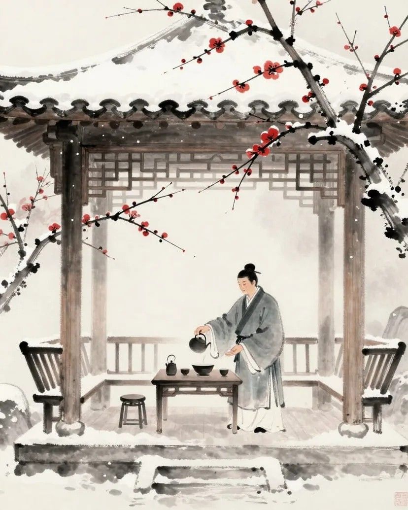Долгая ночь стояла безмолвна. Они сидели друг против друга. Ли Шубай, глядя на неё, увидел, как свет лампы ложится на её щёки — белые, как нефрит, с лёгким персиковым оттенком, будто в глубине ночи рядом с ним распустилась тихая весна. Он заметил, как дрожит отражение света на её ресницах, и поспешно отвёл взгляд. Его глаза остановились на стеклянной чаше, где неподвижно покоилась красная рыбка, будто уснувшая.