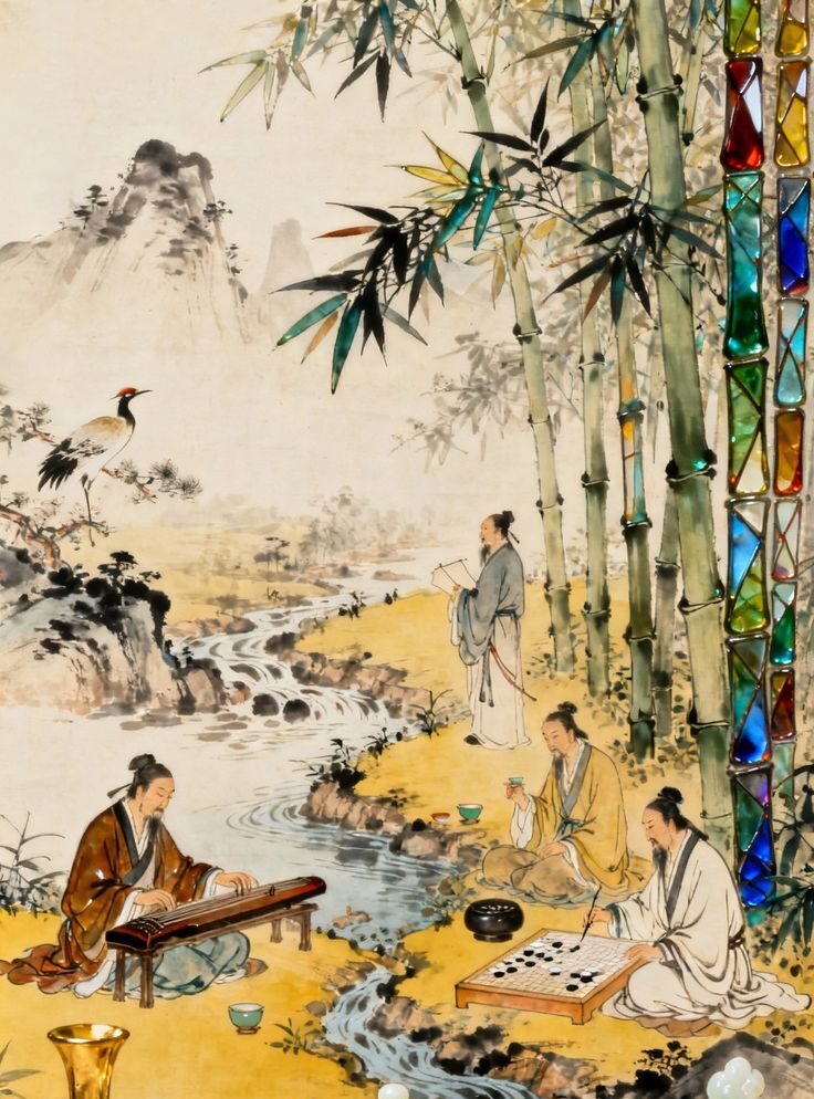 5.  Пять звуков (五音 / Wǔyīn). Это названия пяти ступеней китайской пентатоники (традиционной гаммы). В эпоху Тан они не просто обозначали ноты, но и соответствовали элементам мироздания: