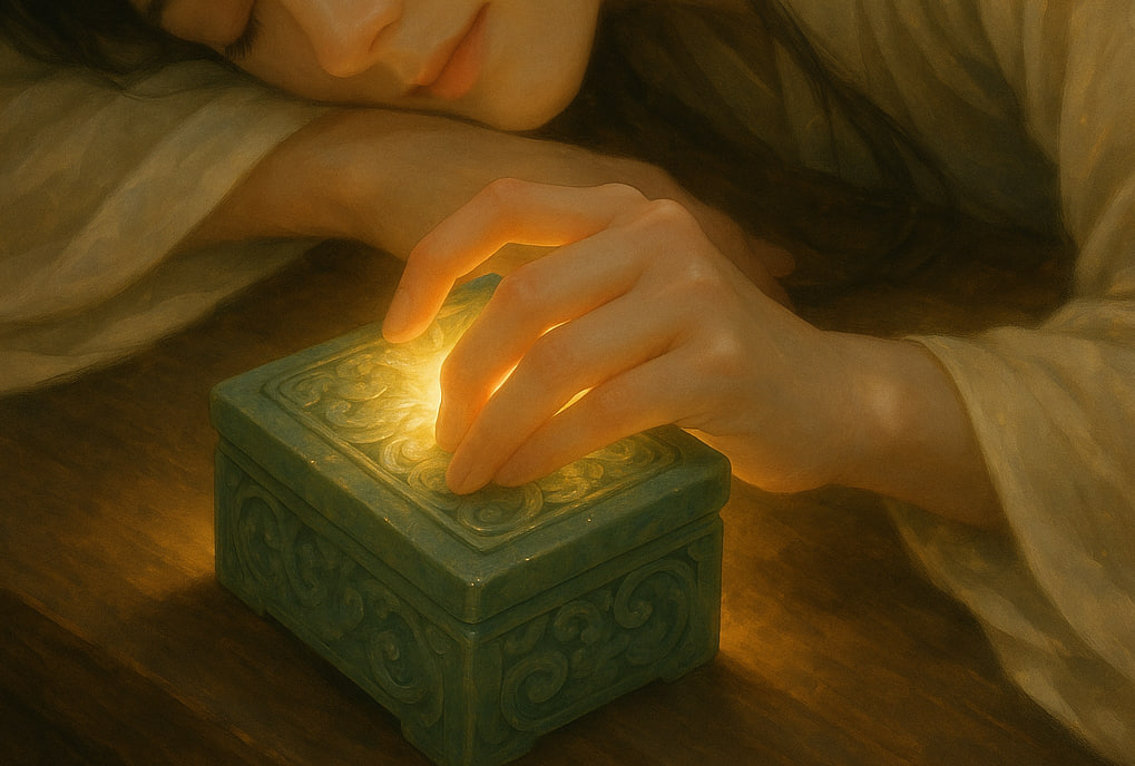 Затем он опустил взгляд и вложил шкатулку в маленькую ладонь спящей девушки.
