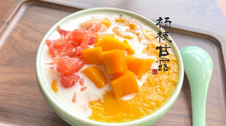 - Янчжи ганлу (杨枝甘露, yángzhī gānlù) — популярный гонконгский десерт на основе манго, помело и кокосового молока. ↩︎