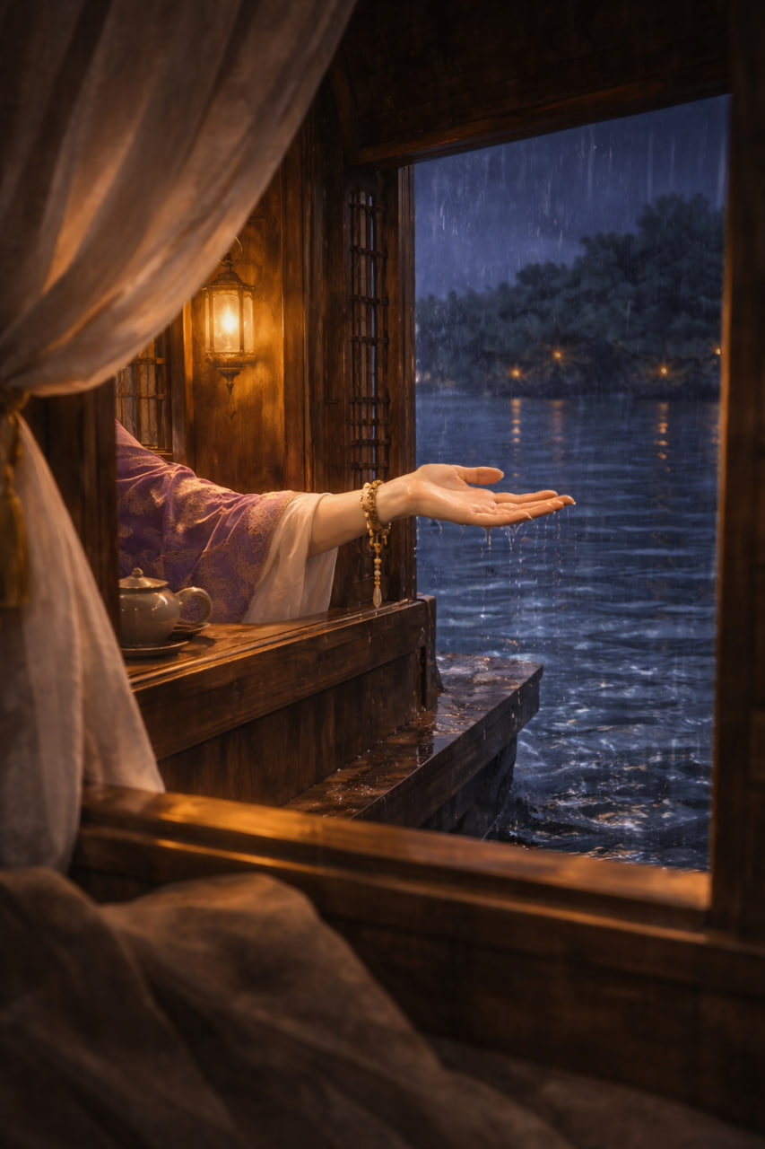 Обрывки фраз, когда она говорила с лодочником снаружи, звук её шагов, когда она проходила мимо каюты, и то, как во время мелкого дождя она высунула из соседней каюты белоснежное запястье.