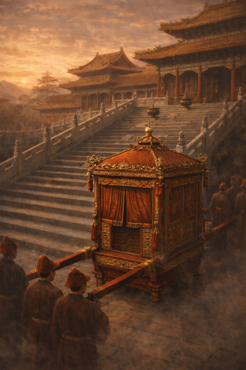 У нефритовых ступеней Куньнина стоял императорский паланкин.