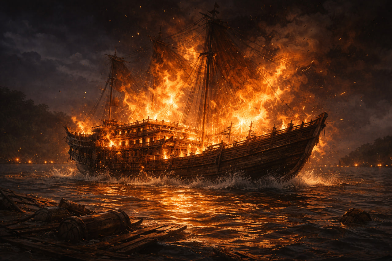 В тот миг, когда его губы дрогнули, в глазах потемнело. Силы будто разом покинули его, и тело бесконтрольно начало погружаться на дно. Последним, что запечатлелось в его угасающем сознании, было её лицо, озарённое всполохами огня.