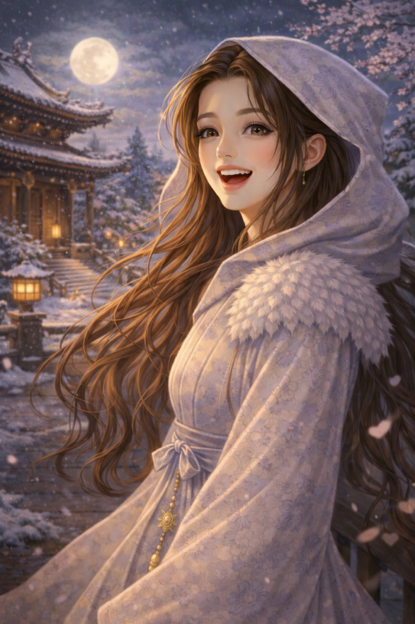 Неизвестно, что сказала ей Лань Сюань, но сяонянцзы вдруг повернула голову и рассмеялась. Холодный ветер откинул скрывавший половину её лица капюшон, полностью явив лик, подобный лотосу, столь же яркий, как весенние цветы и осенняя луна2.