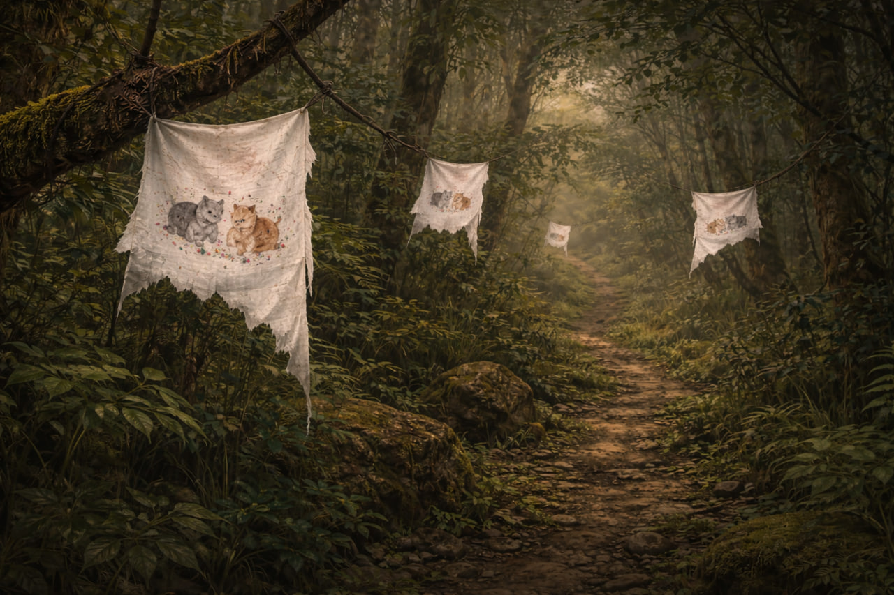 Если бы даос Цинмяо не развесил эти лоскуты на деревьях в густом лесу за пределами храма Цинъянь, указывая дорогу, он не смог бы найти это место так быстро.