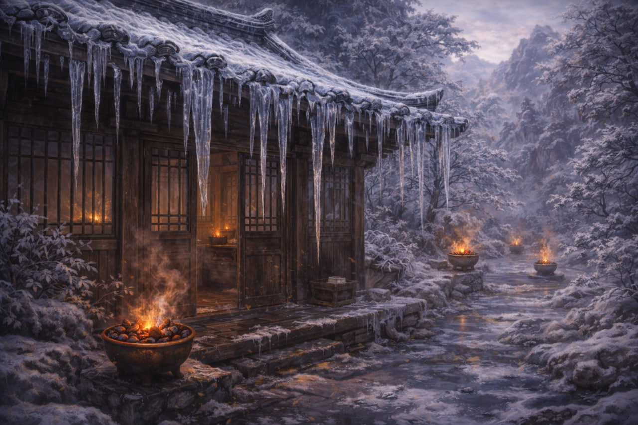 На следующий день на горе Лунъинь наступили весенние заморозки. Ледяные сосульки под карнизом хижины достигали получжана в длину. Баошань прислал сюда немало жаровен с углём.