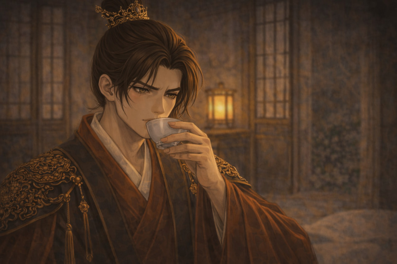 Гу Чанцзинь, пригнувшись, сел в повозку, и Чан Цзи тут же поднёс ему чашку холодного чая.