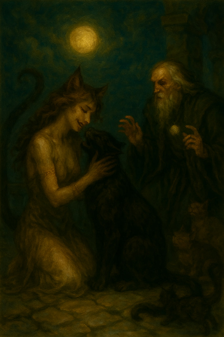 Линн ощутил, как сухость жжёт губы. Он заставил себя сохранять ясность разума и думал: кто она? Жрица кошачьего божества? Его избранница? Или само божество, воплотившееся в человеческом облике?