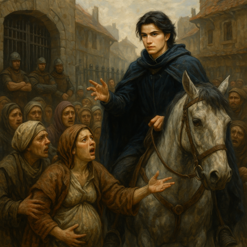 У ворот — десятки лиц, полных боли, страха и надежды, обернулись к нему.