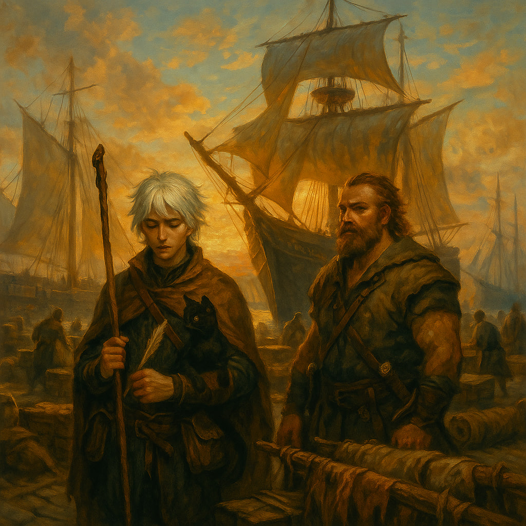 — Одних этих вещей хватит, чтобы нанять меня в дорогу, — вздыхал Баренсимо, то коротко, то протяжно, а потом вдруг оживился: — Раз уж заплатили, пора работать! Пойдём искать корабль — самый надёжный, самый устойчивый. Чтобы господин маг мог спокойно читать в пути и не терять ни минуты!