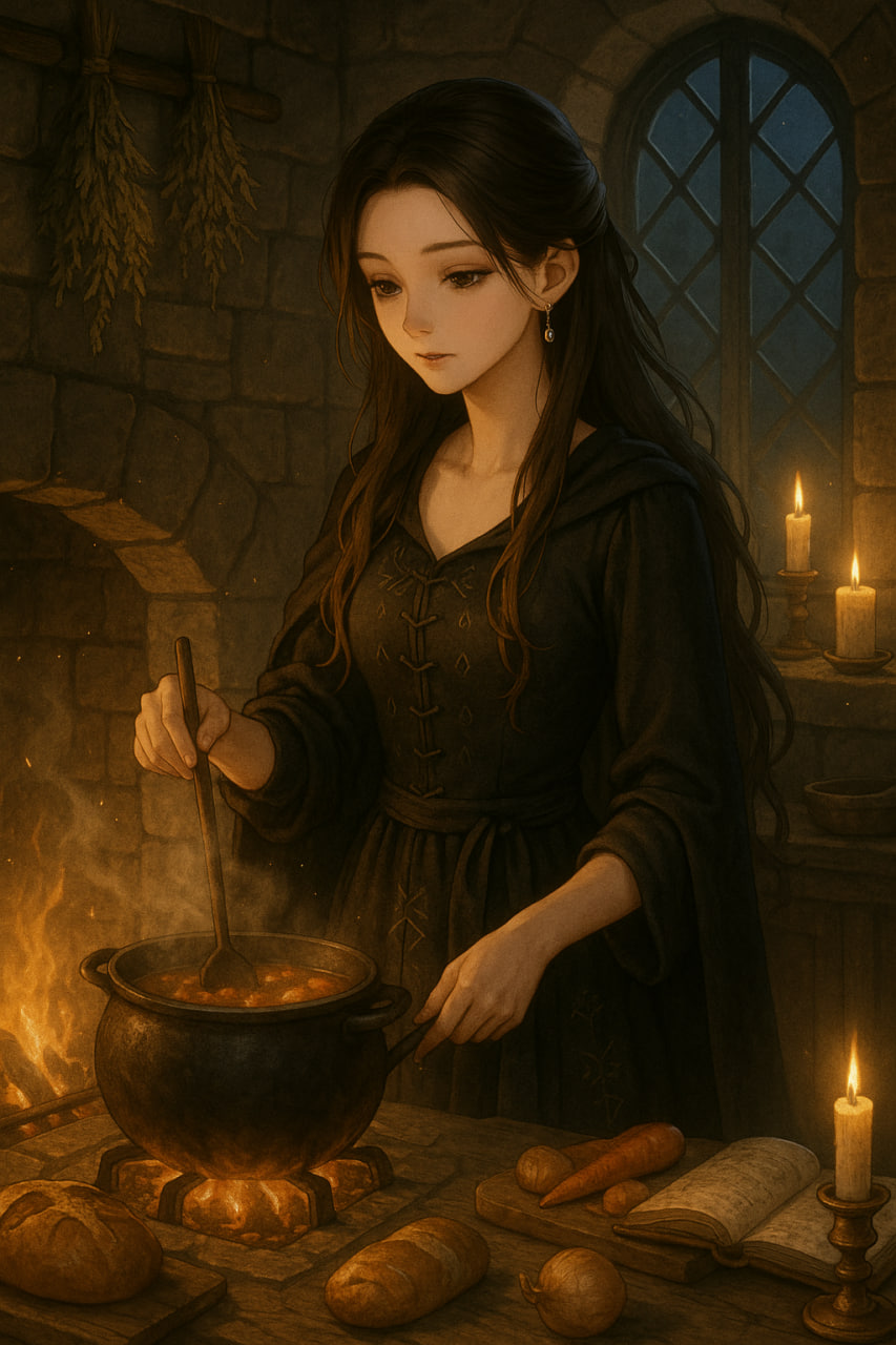 Она колдовала над блюдами, и аромат наполнил комнату.