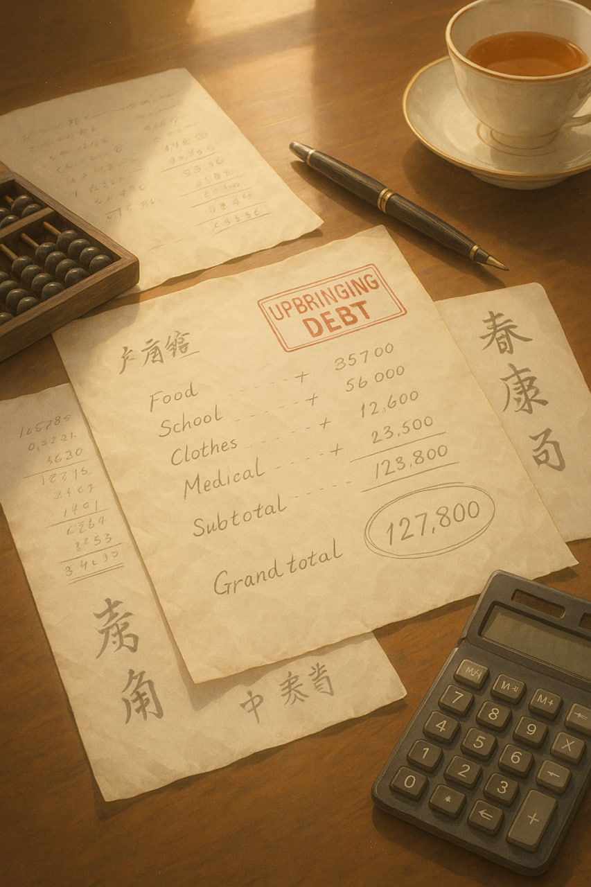 — Это расходы за все годы, пока я жил в доме Лу, — голос его прозвучал жёстко. Он нарочито не сказал «в твоём доме», а отчуждённо «в доме Лу». — Питание, жильё, обучение… добавил кое-какие прочие траты и проценты.