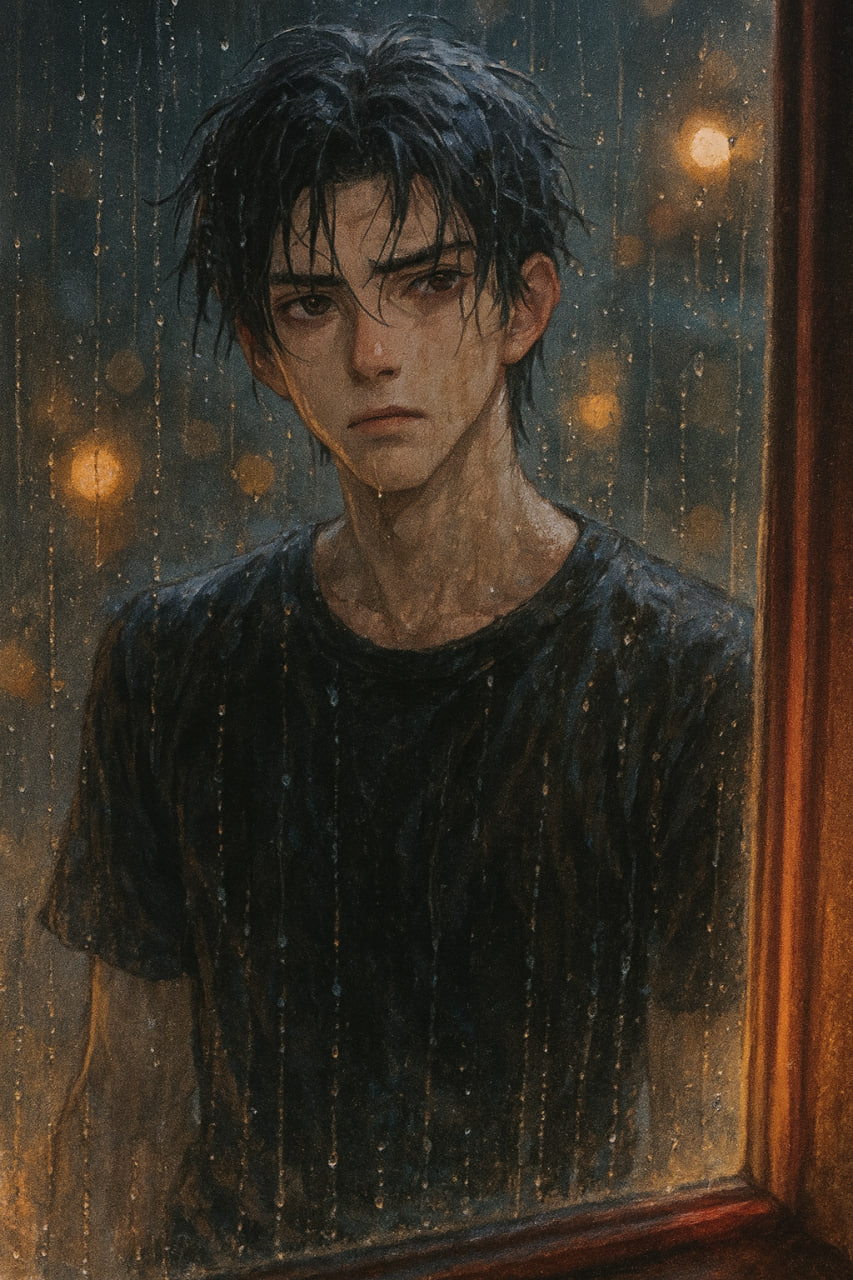 Его волосы намокли от дождя, на плечах тёмная футболка прилипла к коже, черты лица — всё те же, резкие и усталые. Как и в детстве, он предпочитал чёрное, и теперь казался частью ночи, но она узнала его сразу.