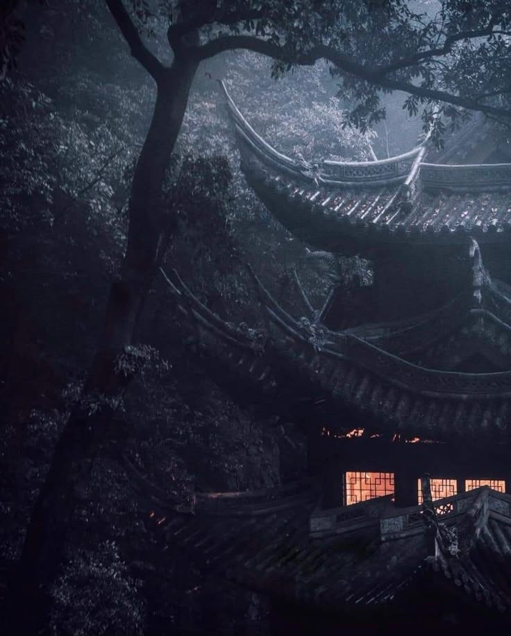 Во дворе стоял древний, столетний вяз. Фу Няньюй поднял глаза и застыл. На толстой ветви дерева сидел человек в чёрном плаще, с лицом, почти скрытым тенью капюшона. Лишь пара тускло-зелёных глаз, как болотные огни, смотрели прямо на него, а из горла неизвестного вырывалось глухое, хриплое дыхание.