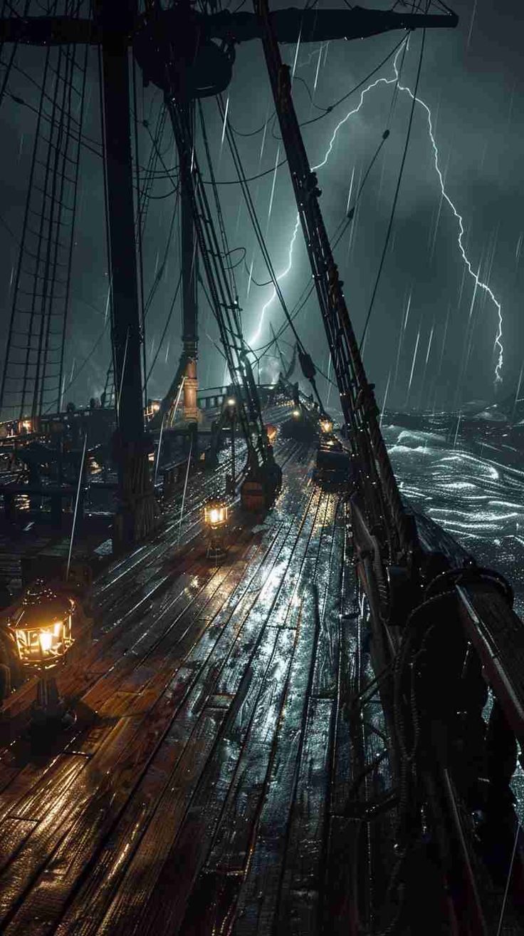 Внезапно «корабль-призрак» словно подбросило вверх, как будто огромный морской монстр поднял его над волнами. Затем он тяжело рухнул вниз, и у всех зазвенело в ушах.