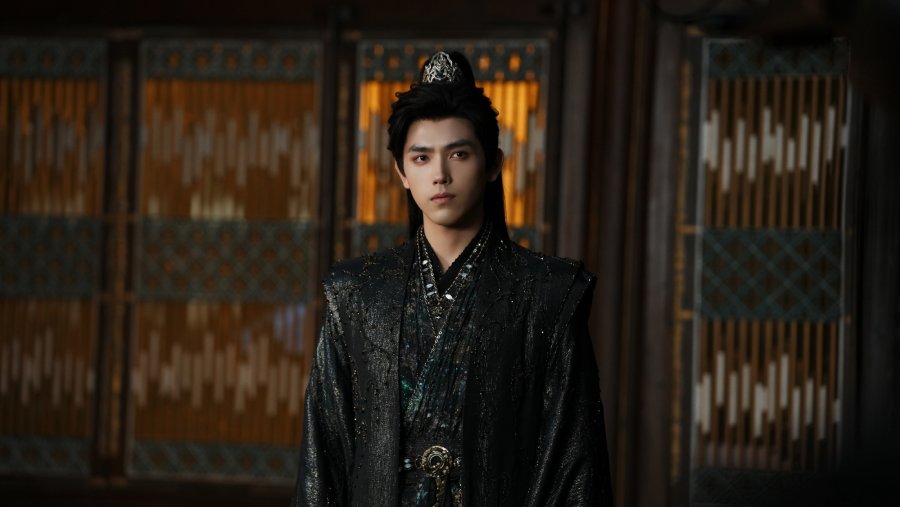 Сквозь щели жёлто-зелёной ширмы смутно виднелся Фэнъи, облачённый в роскошные одежды из переплетённых золотых и белых нитей. Он сидел на мягкой подушке, скрестив ноги, на коленях у него лежала берестяная трость, а колокольчики на ней звенели сами собой, без малейшего дуновения ветра.